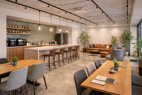 カフェラウンジのようなおしゃれな空間で、高速Wi-Fiや電源、無料の本格コーヒーなどの設備を利用できます。